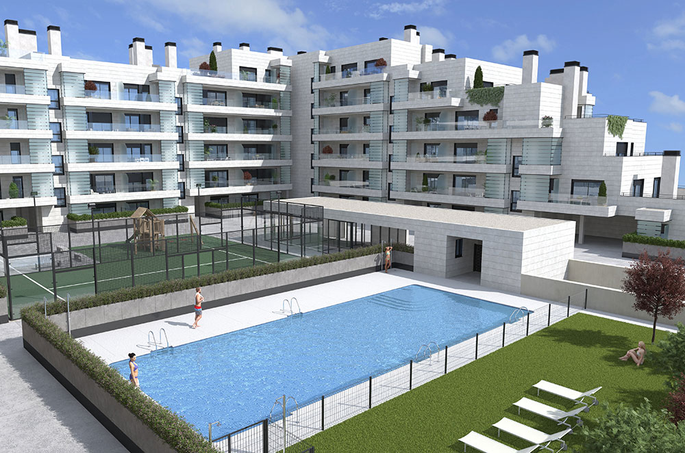 Instalación centralizada de aerotermia, suelo radiante refrescante y ACS para 112 viviendas en Alcobendas, Madrid