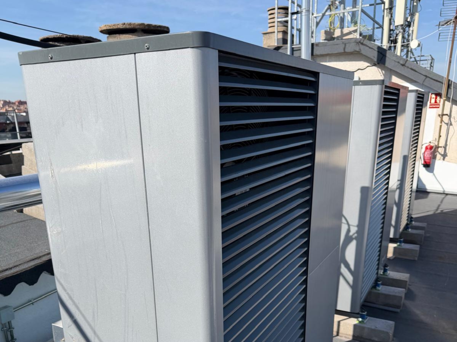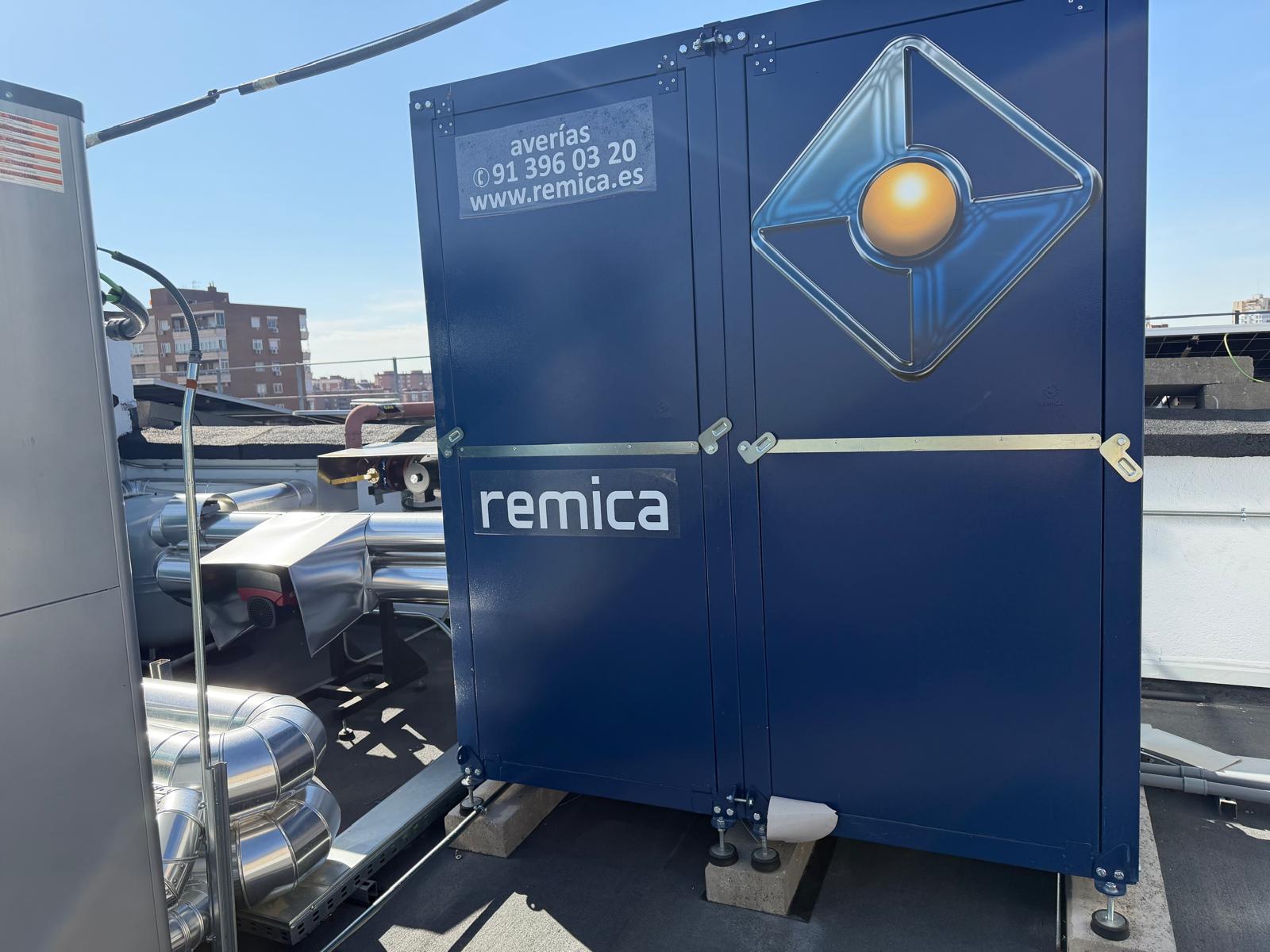 Remica ha llevado a cabo la rehabilitación del sistema de producción de calor y agua caliente sanitaria mediante el Plan Remica Hybrid Coste Cero. Este sistema híbrido combina aerotermia y energía solar fotovoltaica como fuentes principales, manteniendo las calderas existentes como sistema de reserva. Esto permitirá a la comunidad aumentar la eficiencia energética de la instalación y reducir la demanda energética.