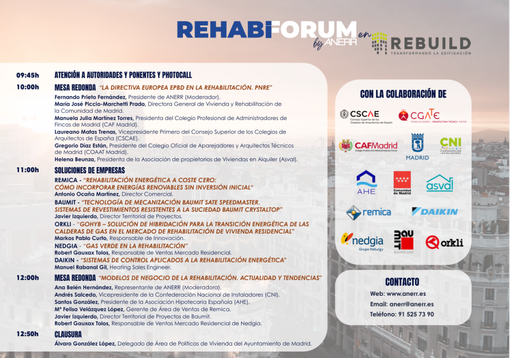 Posteriormente, a las 12:00 horas, Remica participará en la mesa redonda “Modelos de negocio de la rehabilitación. Actualidad y tendencias”, con la intervención de Mª Felisa Velázquez López, responsable de Ventas de la compañía. En este debate, moderado por representantes de ANERR, se analizarán los nuevos enfoques y modelos que están impulsando la rehabilitación energética en España, junto a representantes de entidades como la Confederación Nacional de Instaladores (CNI), la Asociación Hipotecaria Española (AHE), Baumit y Nedgia.